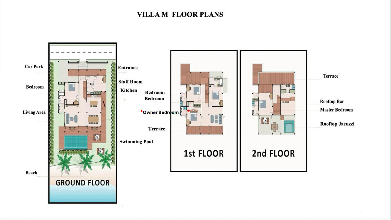 Garden and Pool: Enjoy tropical alfresco living by your swimming pool which overlooks the beach, just a few easy steps away, and a deck where you can soak up the sun on the recliners … and, the ultimate indulgence, the rooftop Jacuzzi and sunbeds,