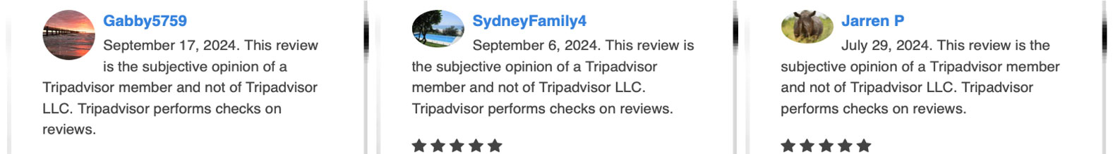 Trip Advisor Reviews (96 Five Star Reviews)